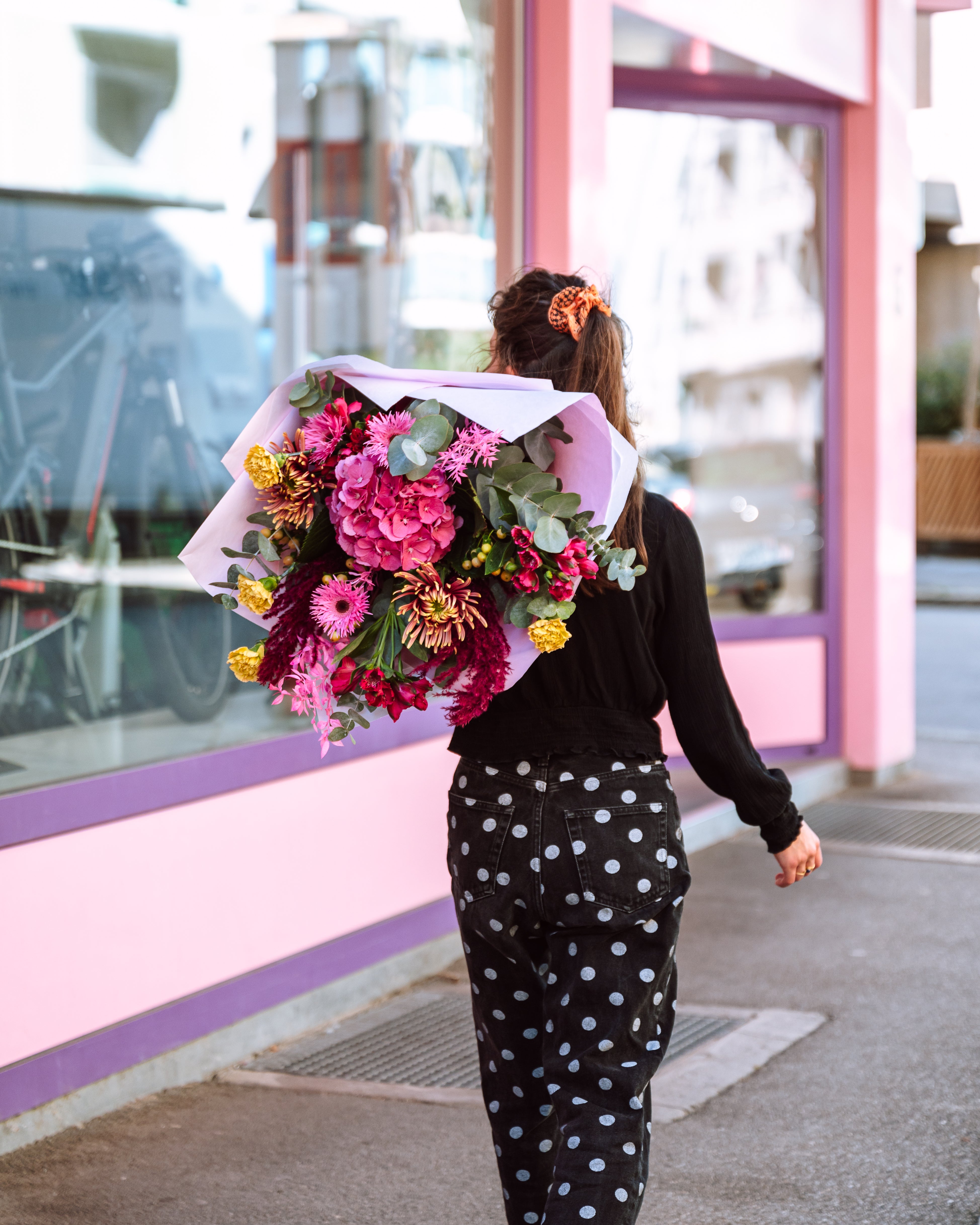 Commande avant 7h, reçois ton bouquet le jour même ! Notre équipe livre à vélo dans tout Fribourg, pour une livraison rapide et écologique.